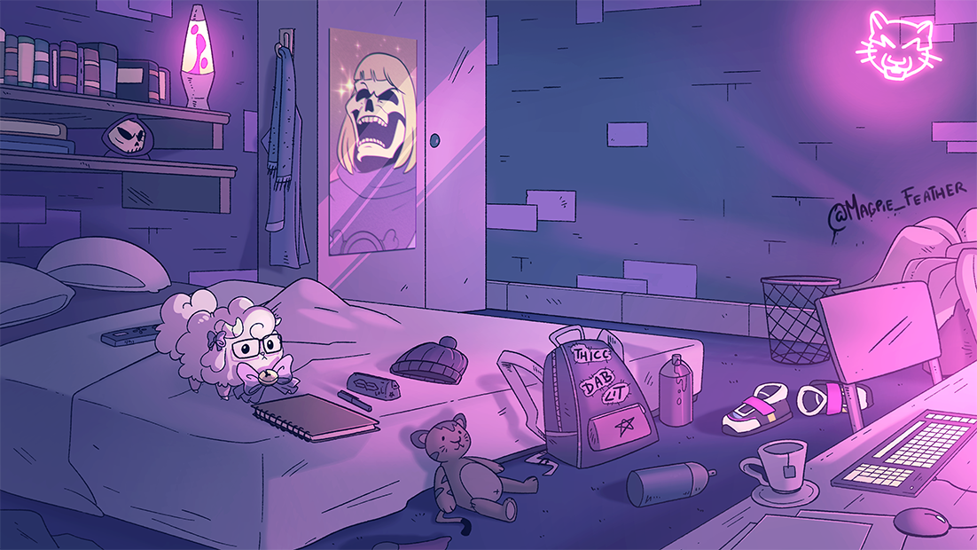- Her husband dragged his feet with signing the divorce papers, which left Karen without an income for over a year.- With no life skills outside of being a dutiful housewife, Karen became depressed, slept most of the day, and used her free time to trawl the internet. She discovered streaming, VTubers, idols, e-girls and zoomer culture.- She was sponsored by a voice actress called OolayTiger to come up with a mascot for her brand, and to make the costume for promotional purposes.- Karen debuted on Twitch as 'Taiga-tan', and made Partner in less than a month.- Her mental health improved significantly!- Her Mum became slightly frustrated with her NEET lifestyle. She hatched a plan to try to get Karen back together with her husband, by constantly inviting him over for tea.- Her husband was revealed to be named 'Luke' after he crashed one of her livestreams, and they had an argument live on stream in front of her viewers.- She smoothed things over with him, but he expressed discomfort over her 'trampy' internet persona.- Taiga compromised and cut her long wig to try to appease his boundary.